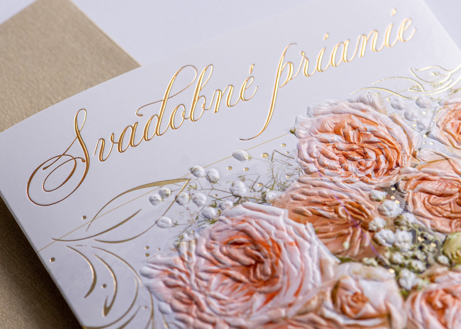 Thermographic printing gives the prints an interesting plastic look. It is about creating a relief by the action of heat. A thermographic powder is applied to the not yet dried adhesive print, which polymerizes under the action of heat. During polymerization, the powder increases its volume, and in this way an irreplaceable relief is created. The very appearance of the relief is determined by the powder used, which can be pearly, metallic, glittery or simply white.