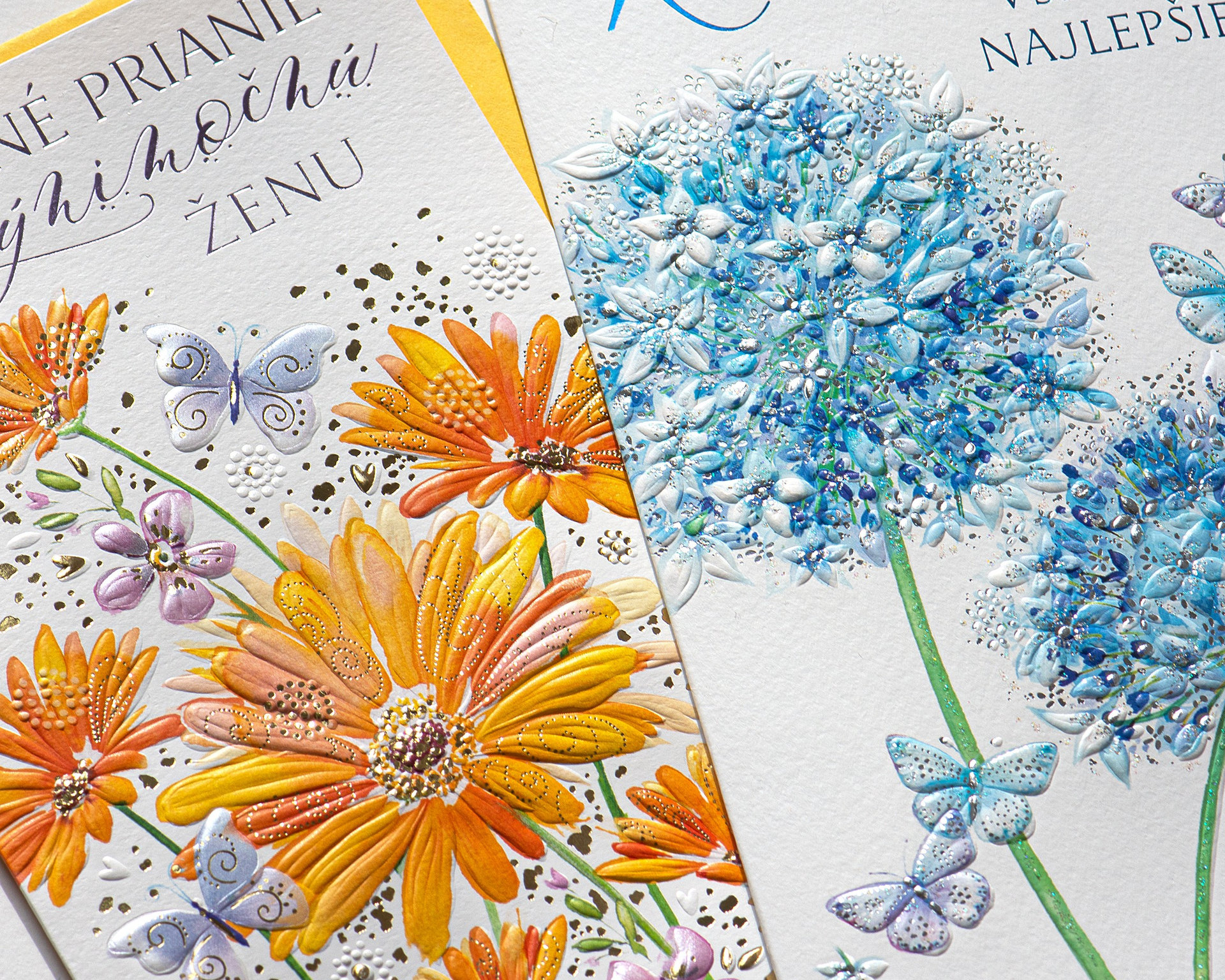 Our own machinery and many years of experience allow us to process, not only greeting cards using special graphic techniques...