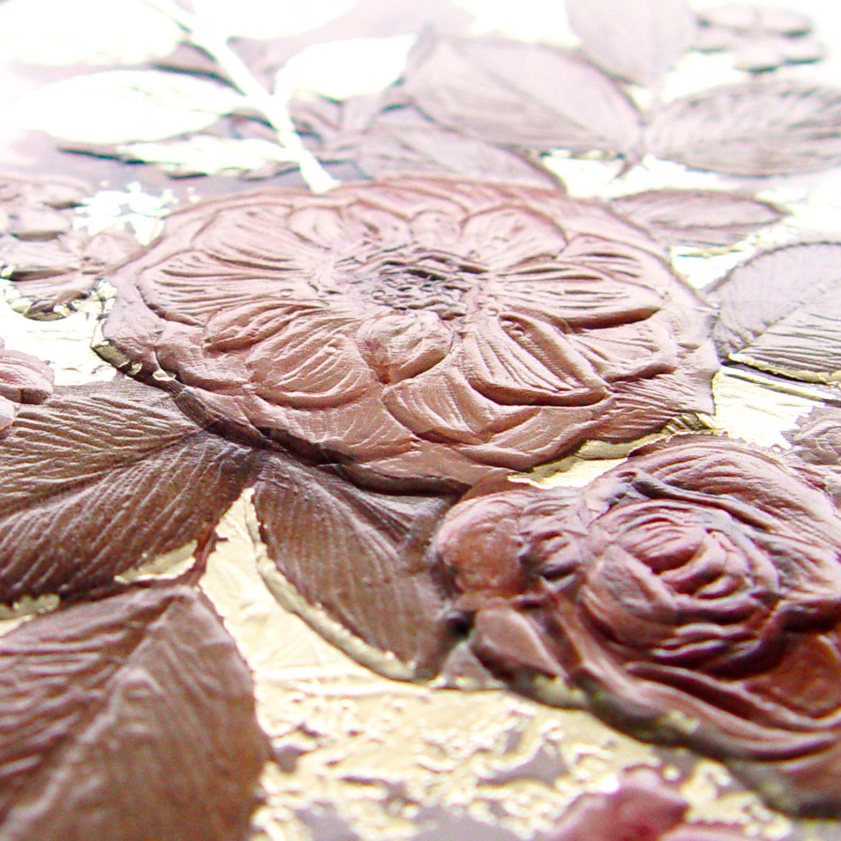 Where, in addition to the profile, the colour transferred from the embossing foil is also visible on the motif after printing. The ink is transferred from the foil to the printed material by the pressure and heat that the book forms develop. By the pressure of the printing surfaces, the foil is pressed into the paper and the ink is released at the places of pressure and temperature.