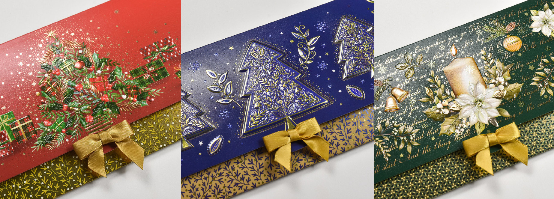 Our Christmas and New Year cards are more than just text and design. Their distinctive appearance is created through a combination of special papers, die-cuts, and decorative components.